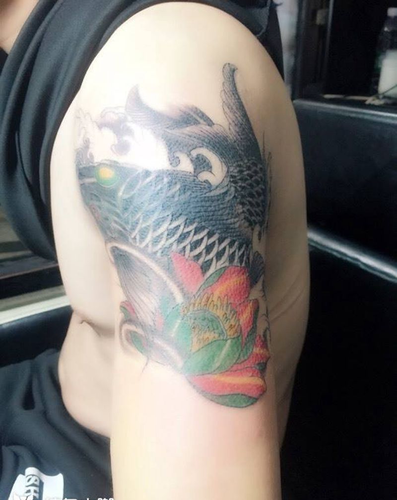 • T网红王老大花腿龙纹身图片_腿部新传统纹身图案