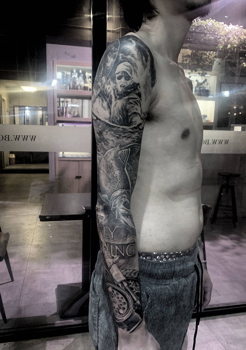 当前位置: 首页 >浙江省衢州市纹身店-拼搏刺青纹身图案>路亚花臂纹身图片_手臂欧美写实纹身图案