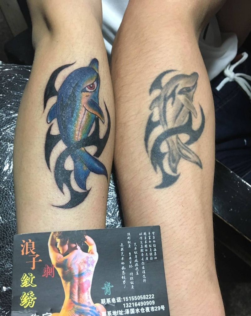 • T网红王老大花腿龙纹身图片_腿部新传统纹身图案