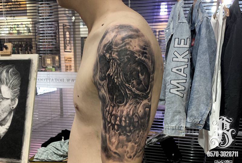 当前位置: 首页 >浙江省衢州市纹身店-拼搏刺青纹身图案>遮盖骷髅纹身图片_手臂欧美写实纹身图案