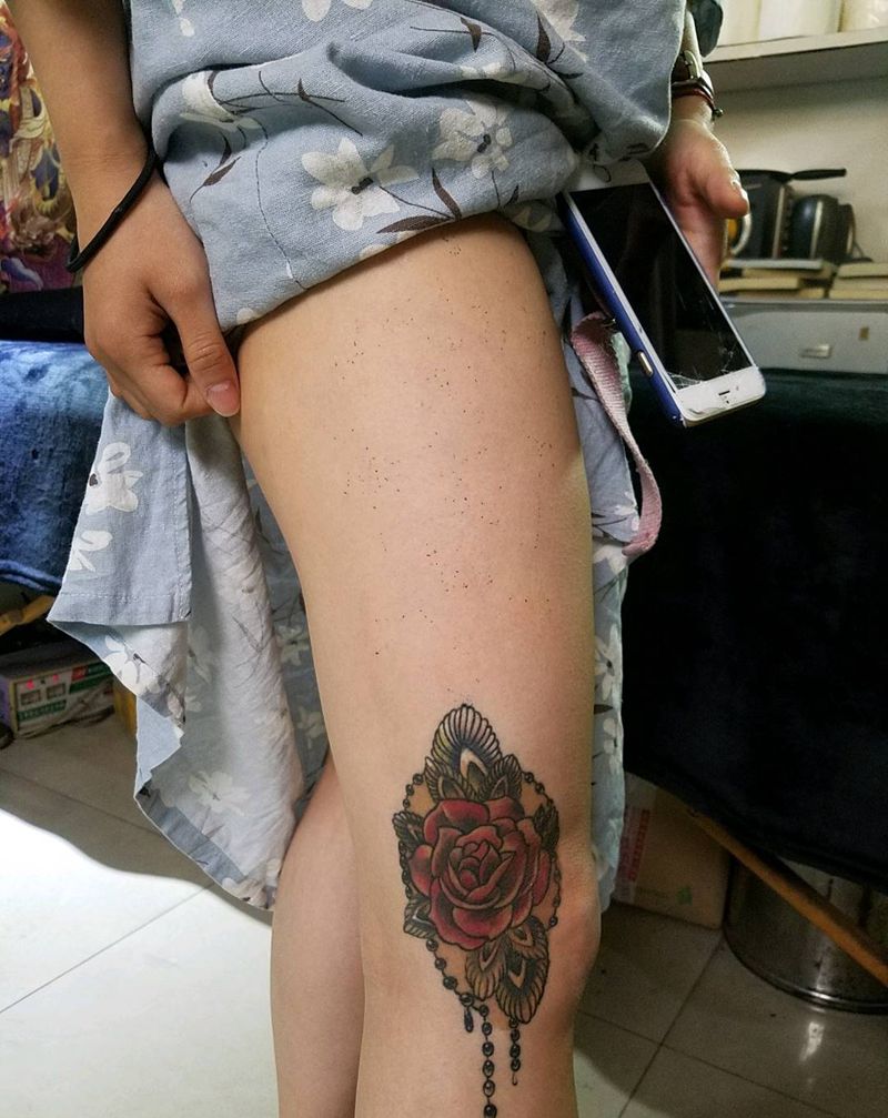 • T网红王老大花腿龙纹身图片_腿部新传统纹身图案
