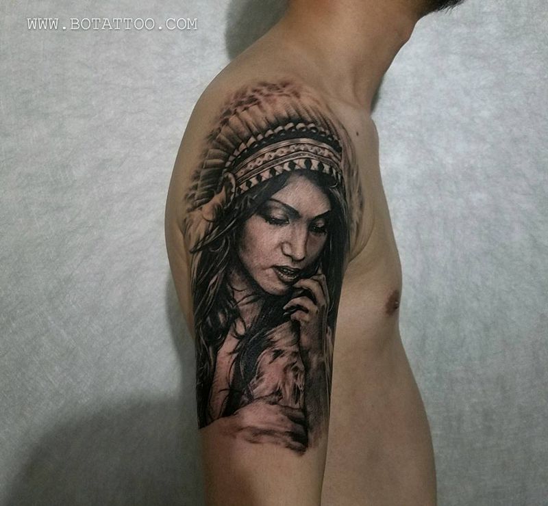 • 纹身吧推荐的披肩图腾半胛纹身图案作品展示
