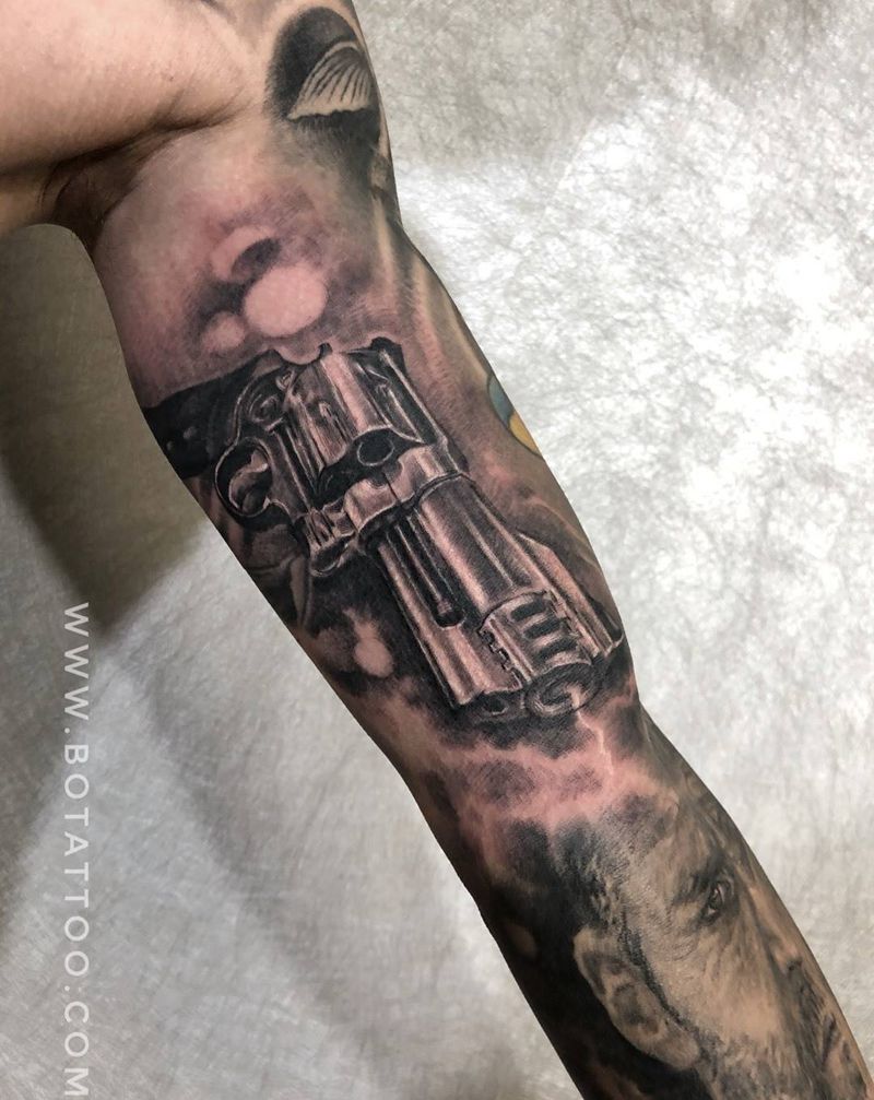 当前位置: 首页 >浙江省衢州市纹身店-拼搏刺青纹身图案>枪纹身图片