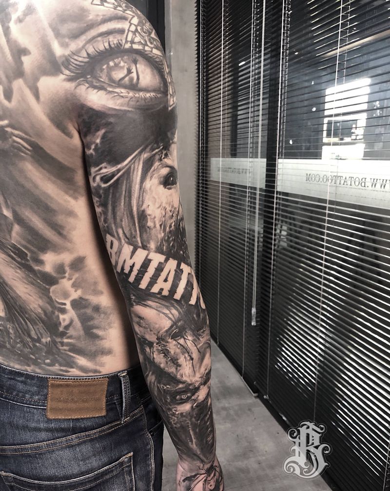 当前位置: 首页 >浙江省衢州市纹身店-拼搏刺青纹身图案>欧美花臂 遮盖纹身图片