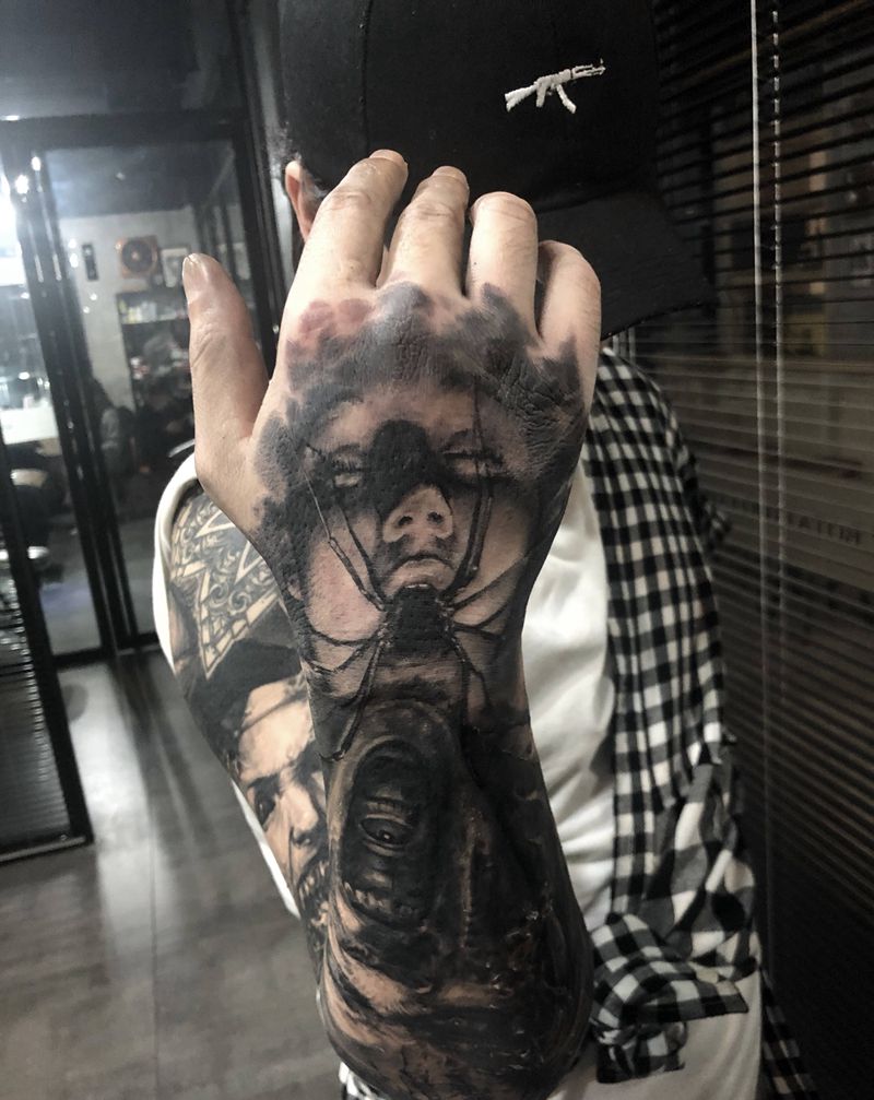 当前位置: 首页 >浙江省衢州市纹身店-拼搏刺青纹身图案>欧美花臂 遮盖纹身图片