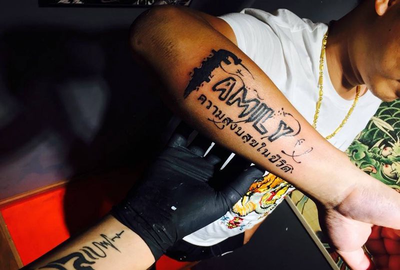 当前位置: 首页 >浙江省台州市纹身店-一念刺青工作室纹身图案>手绘花体字纹身图片