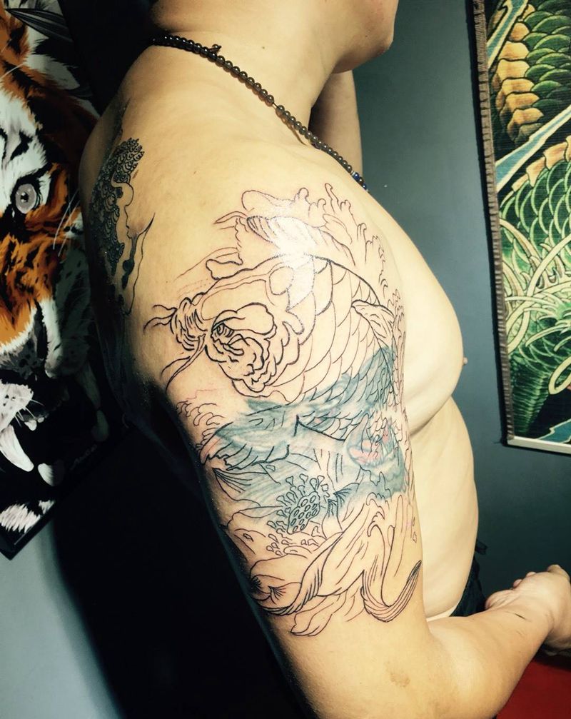 • T网红王老大花腿龙纹身图片_腿部新传统纹身图案