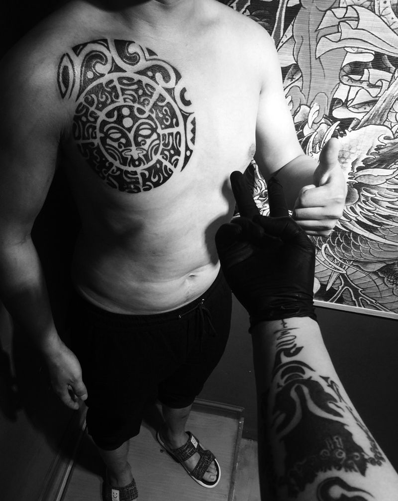 当前位置: 首页 >浙江省台州市纹身店-一念刺青工作室纹身图案>半胛图腾纹身图片