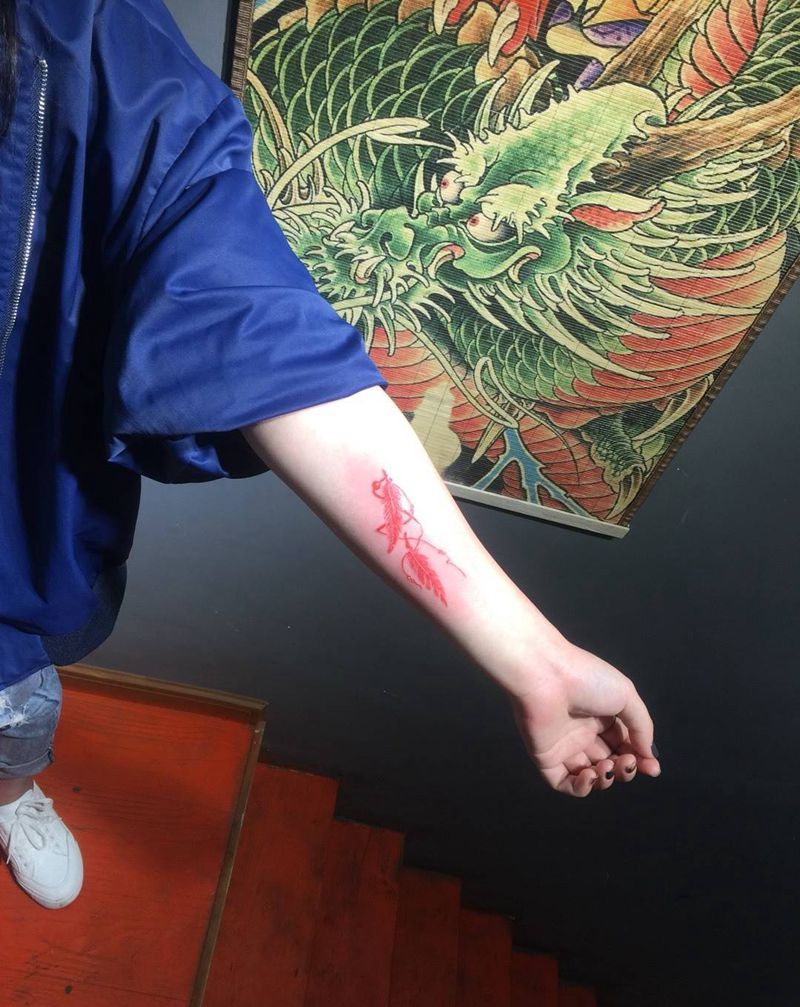 当前位置: 首页 >浙江省台州市纹身店-一念刺青工作室纹身图案>红色羽毛纹身图片