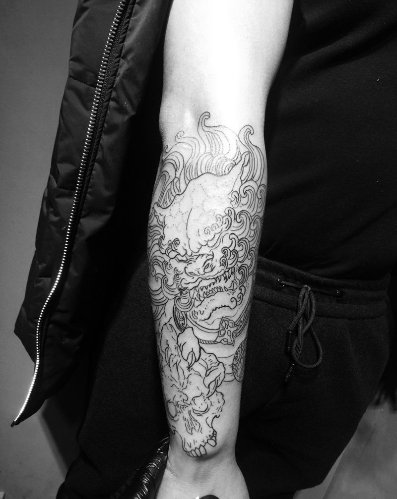 当前位置: 首页 >浙江省台州市纹身店-一念刺青工作室纹身图案>唐狮纹身图片