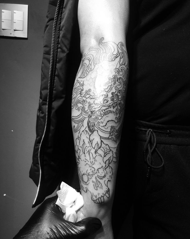 当前位置: 首页 >浙江省台州市纹身店-一念刺青工作室纹身图案>唐狮纹身图片