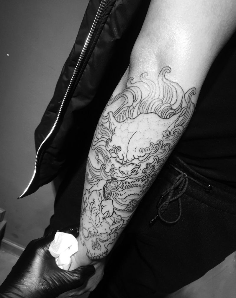 当前位置: 首页 >浙江省台州市纹身店-一念刺青工作室纹身图案>唐狮纹身图片