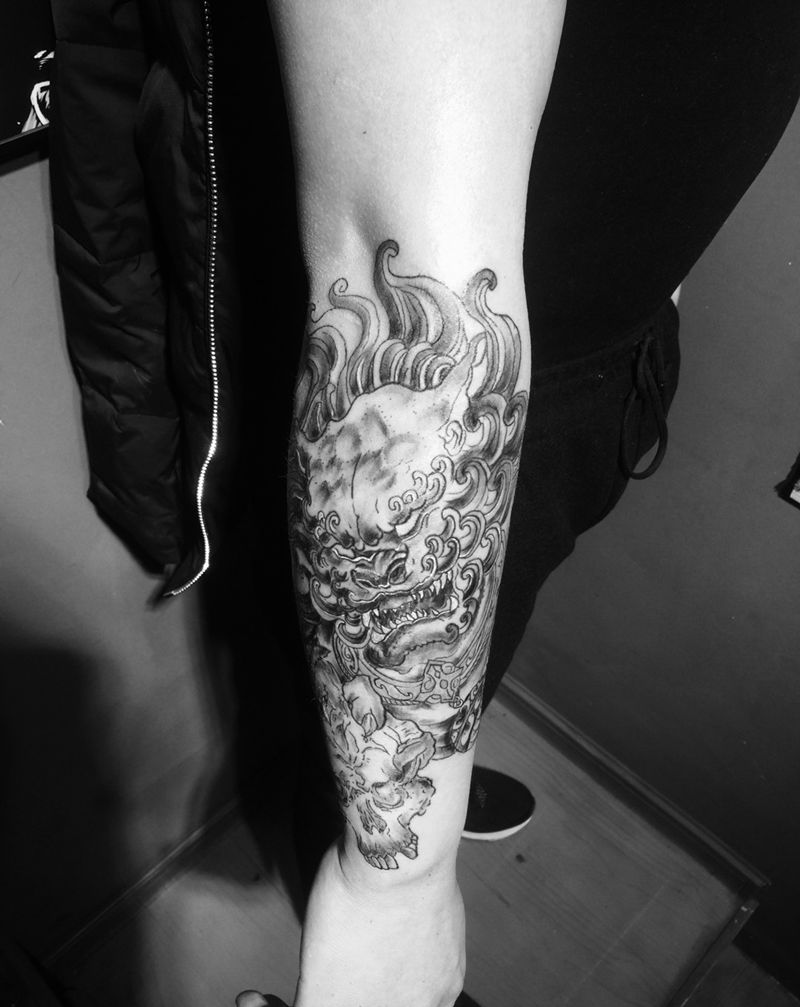 当前位置: 首页 >浙江省台州市纹身店-一念刺青工作室纹身图案>唐狮纹身图片
