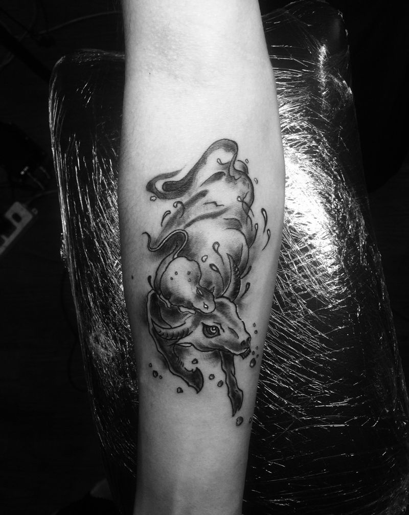 当前位置: 首页 >浙江省台州市纹身店-一念刺青工作室纹身图案>水墨牛纹身图片