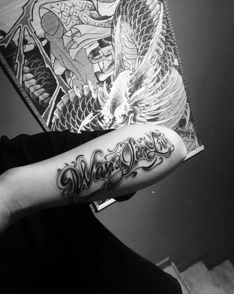 当前位置: 首页 >浙江省台州市纹身店-一念刺青工作室纹身图案>手绘花体字纹身图片