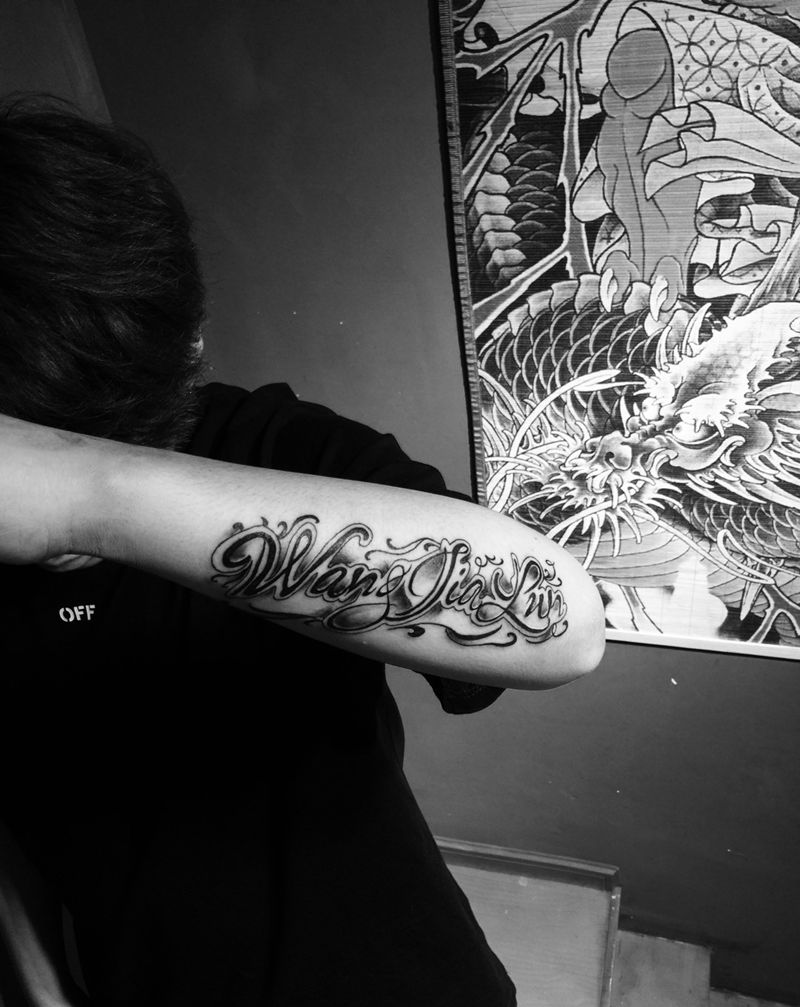 当前位置: 首页 >浙江省台州市纹身店-一念刺青工作室纹身图案>手绘花体字纹身图片