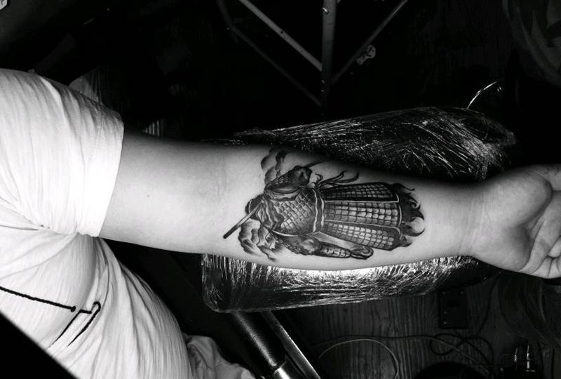 当前位置: 首页 >浙江省台州市纹身店-一念刺青工作室纹身图案>我会是你的盖世英雄纹身图片