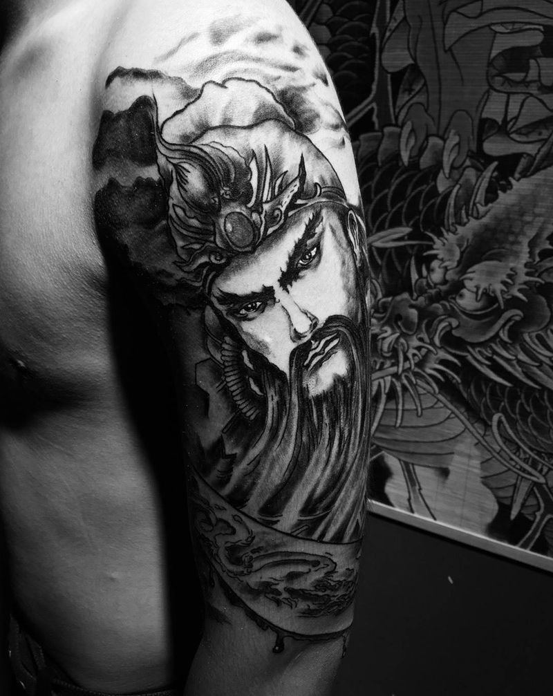 当前位置: 首页 >浙江省台州市纹身店-一念刺青工作室纹身图案>关二爷纹身图片
