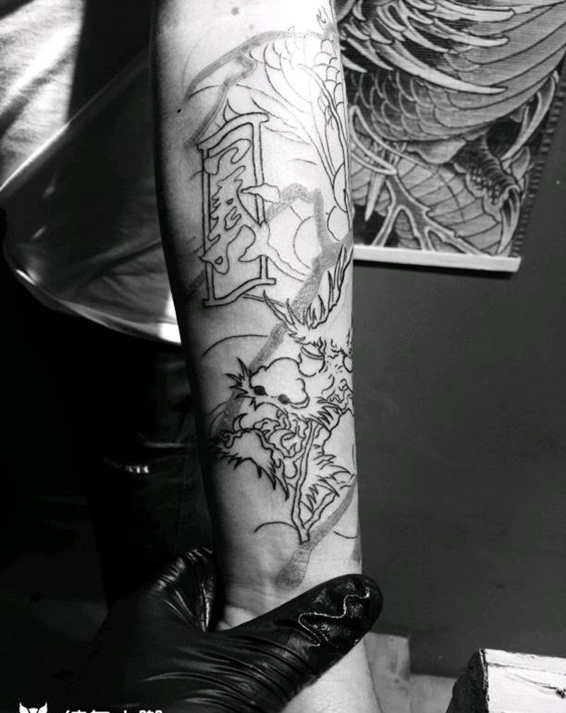 当前位置: 首页 >浙江省台州市纹身店-一念刺青工作室纹身图案>小臂,龙待下次纹身图片