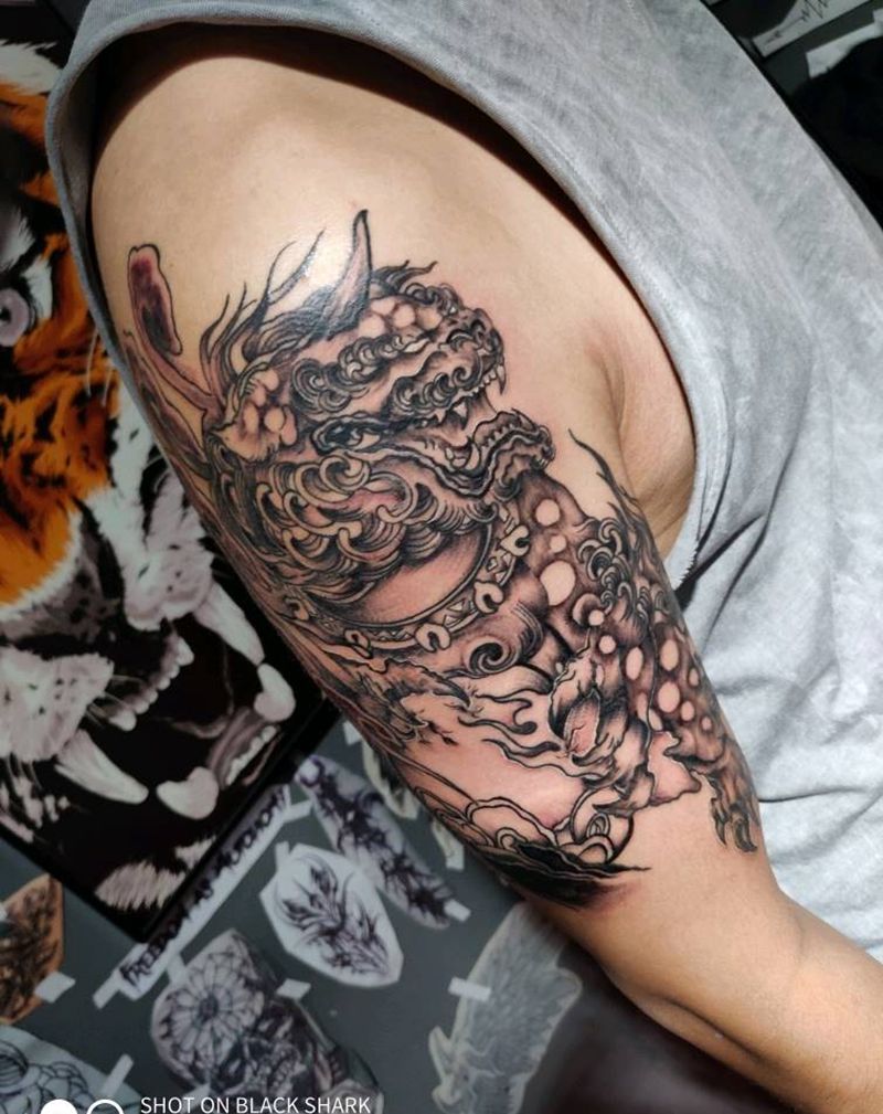 当前位置: 首页 >浙江省台州市纹身店-一念刺青工作室纹身图案>大臂狮子纹身图片_手臂纹身图案