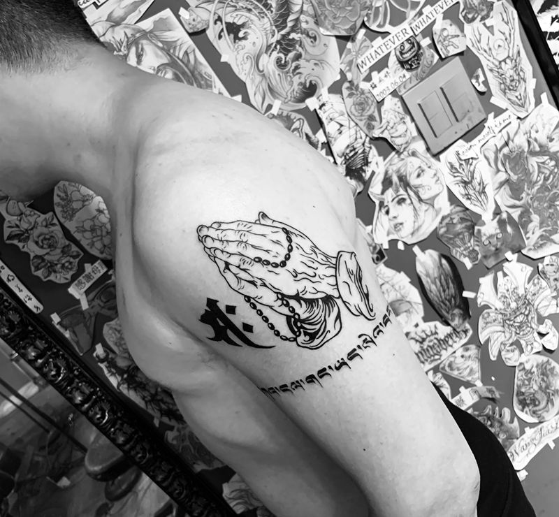 当前位置: 首页 >浙江省台州市纹身店-一念刺青工作室纹身图案>虔诚纹身图片_手臂纹身图案