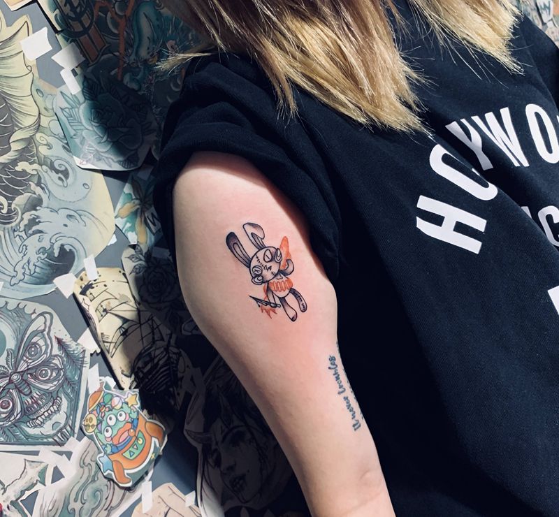 当前位置: 首页 >浙江省台州市纹身店-一念刺青工作室纹身图案>流氓兔纹身图片_手臂纹身图案