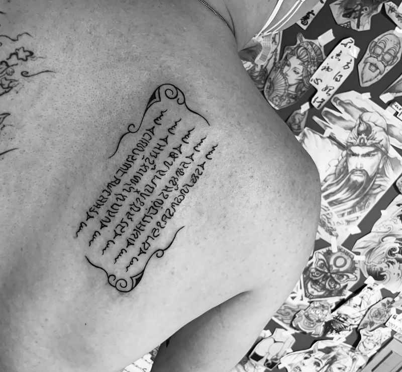 当前位置: 首页 >浙江省台州市纹身店-一念刺青工作室纹身图案>六字真言纹身图片_背部纹身图案