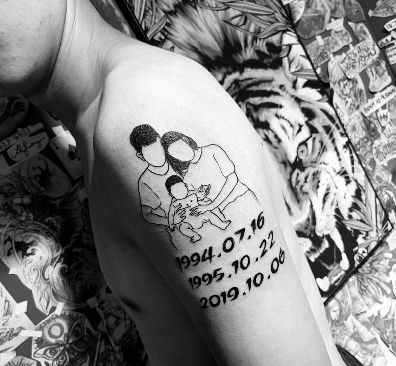• T家庭图,一家四口生日纪念!纹身图片_手臂纹身图案