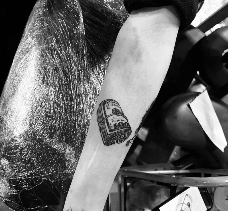 当前位置: 首页 >浙江省台州市纹身店-一念刺青工作室纹身图案>美金纹身图片_手臂纹身图案