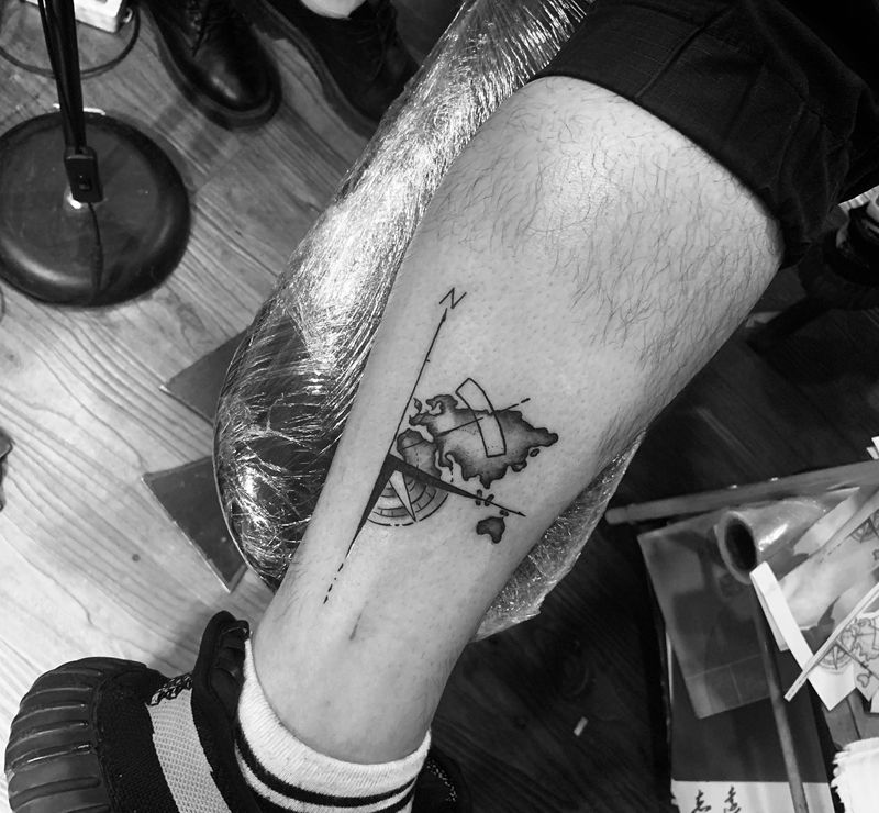 • T包小腿吹火男+阿多福纹身图片_腿部老传统新传统吹火男阿