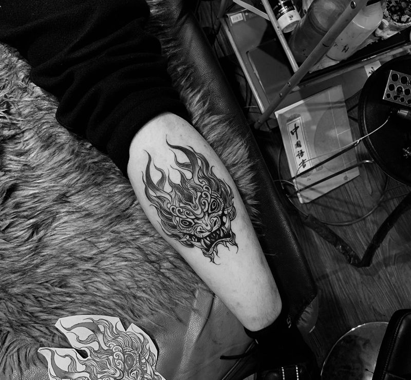 当前位置: 首页 >浙江省台州市纹身店-一念刺青工作室纹身图案>凶兽纹身图片_腿部纹身图案