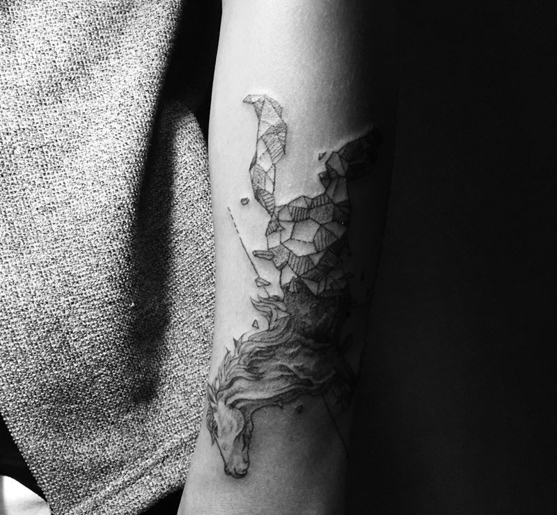 当前位置: 首页 >浙江省台州市纹身店-壹·刺青纹身图案>几何马纹身图片