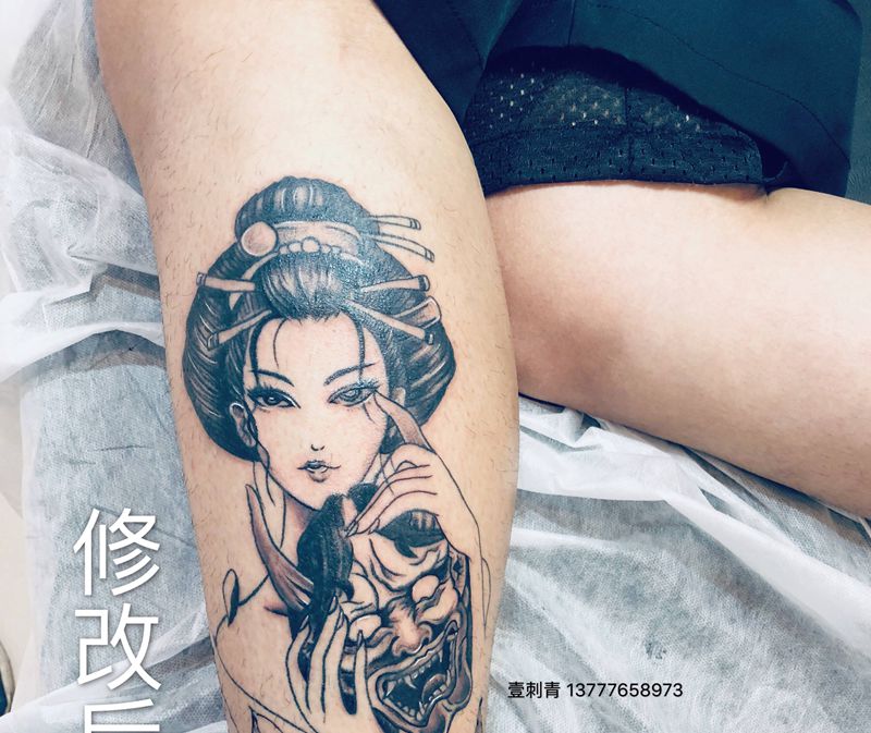 当前位置: 首页 >浙江省台州市纹身店-壹·刺青纹身图案>修改艺妓纹身图片_腿部纹身图案