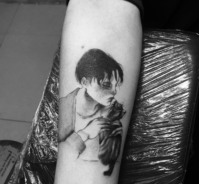 当前位置: 首页 >浙江省台州市纹身店-壹·刺青纹身图案>男人和猫纹身图片