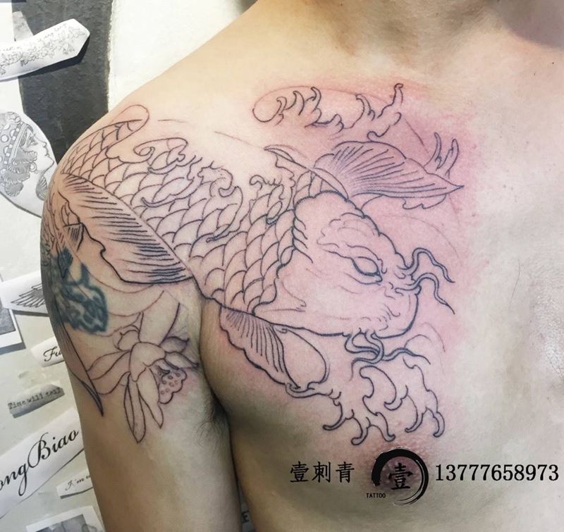 当前位置: 首页 >浙江省台州市纹身店-壹·刺青纹身图案>遮盖鲤鱼纹身图片