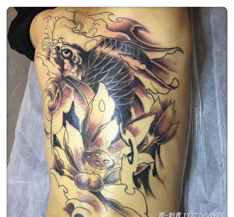 • T网红王老大花腿龙纹身图片_腿部新传统纹身图案