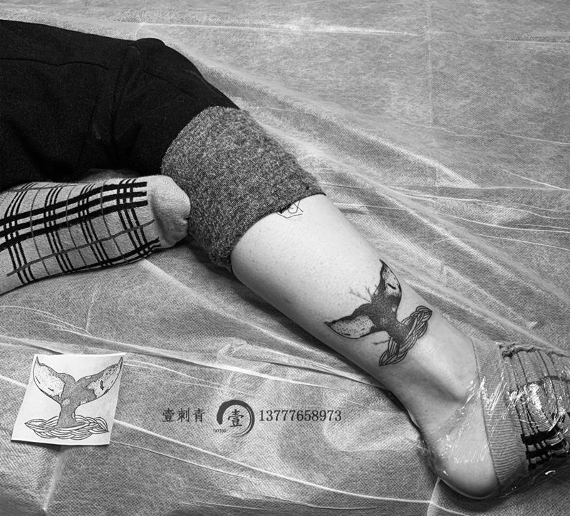 • T网红王老大花腿龙纹身图片_腿部新传统纹身图案