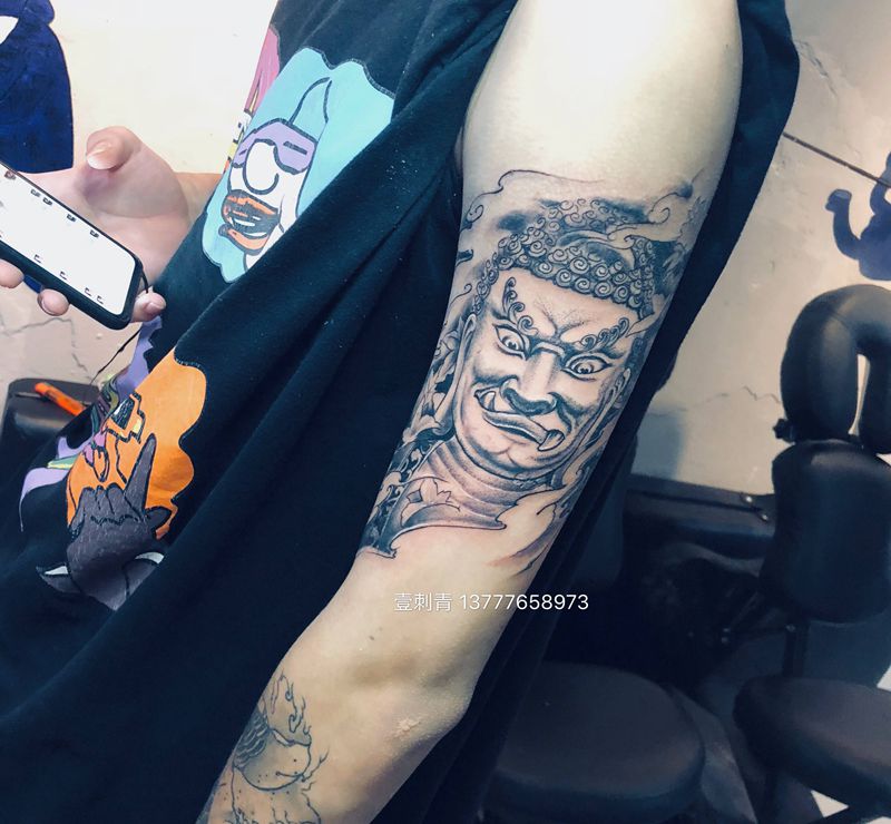 当前位置: 首页 >浙江省台州市纹身店-壹·刺青纹身图案>怒面如来纹身图片_手臂纹身图案