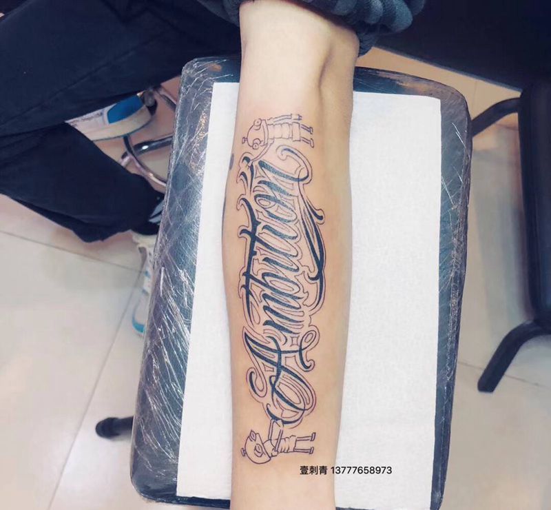 当前位置: 首页 >浙江省台州市纹身店-壹·刺青纹身图案>花体字纹身图片_手臂纹身图案
