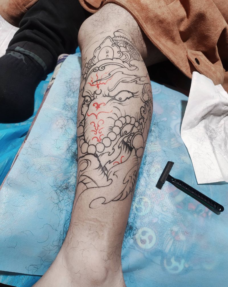 • T网红王老大花腿龙纹身图片_腿部新传统纹身图案