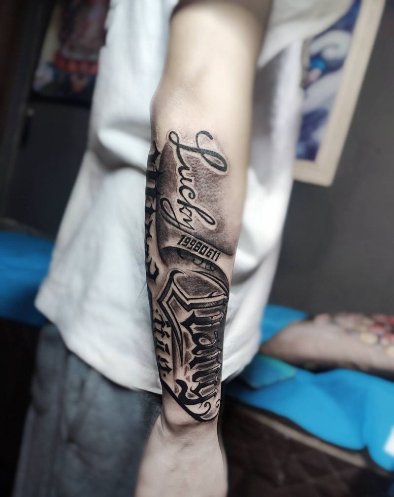 • T家庭图,一家四口生日纪念!纹身图片_手臂纹身图案
