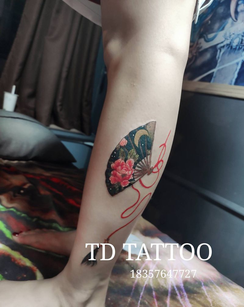 当前位置: 首页 >浙江省台州市纹身店-天道刺青纹身图案>古典风耐看扇子纹身图片_腿部纹身图案
