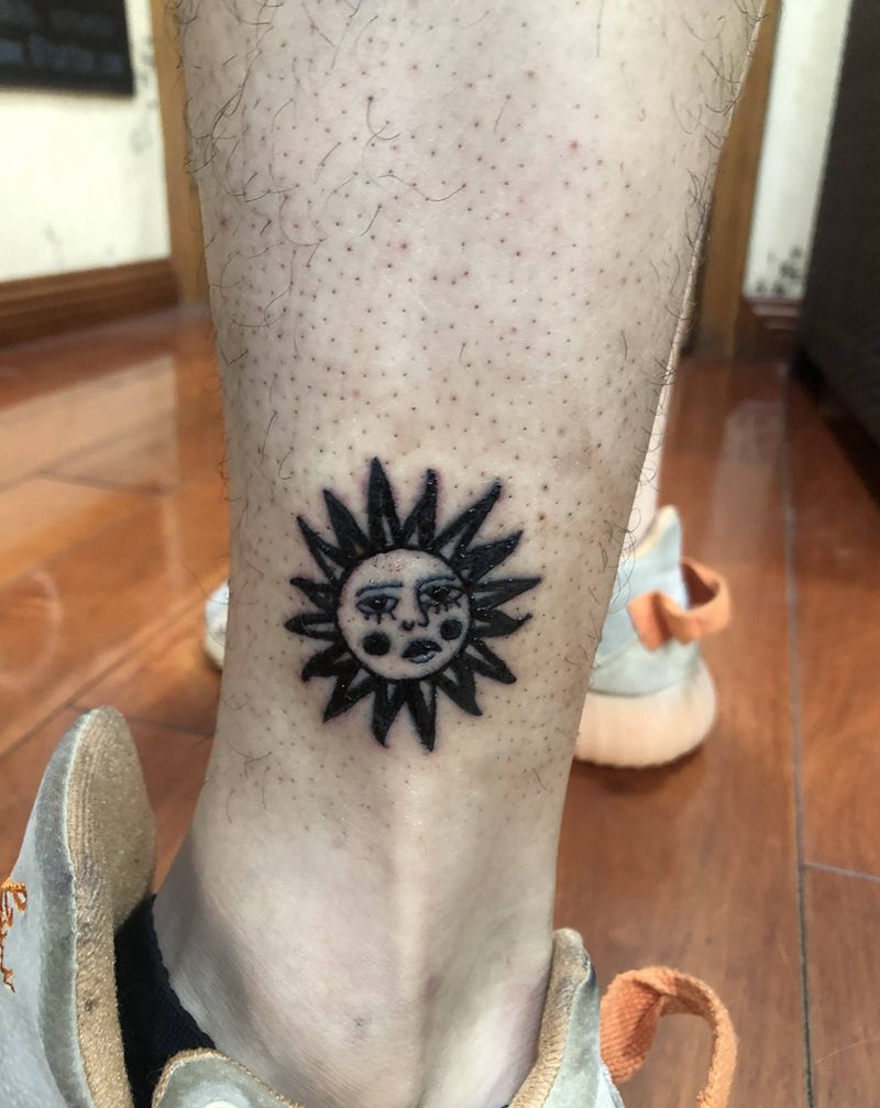 • T包小腿吹火男+阿多福纹身图片_腿部老传统新传统吹火男阿