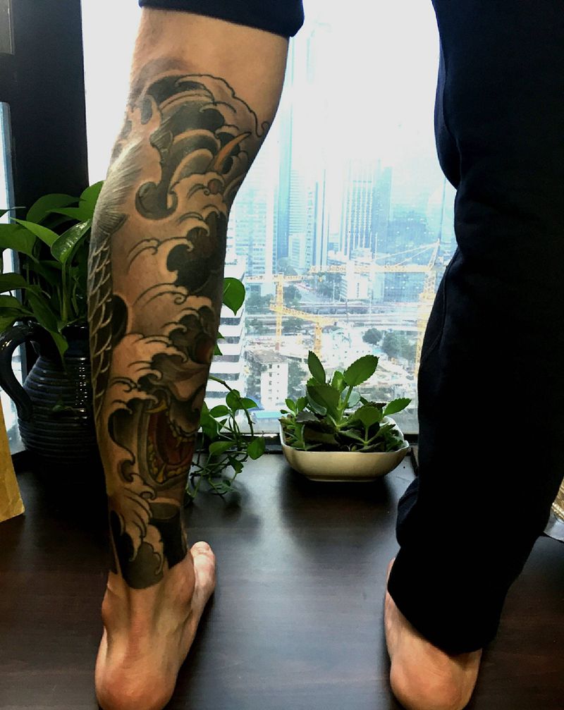 当前位置: 首页 >浙江省衢州市纹身店-民刺青工作室纹身图案>包小腿遮盖纹身图片_脚部腿部新传统老传统纹身图案
