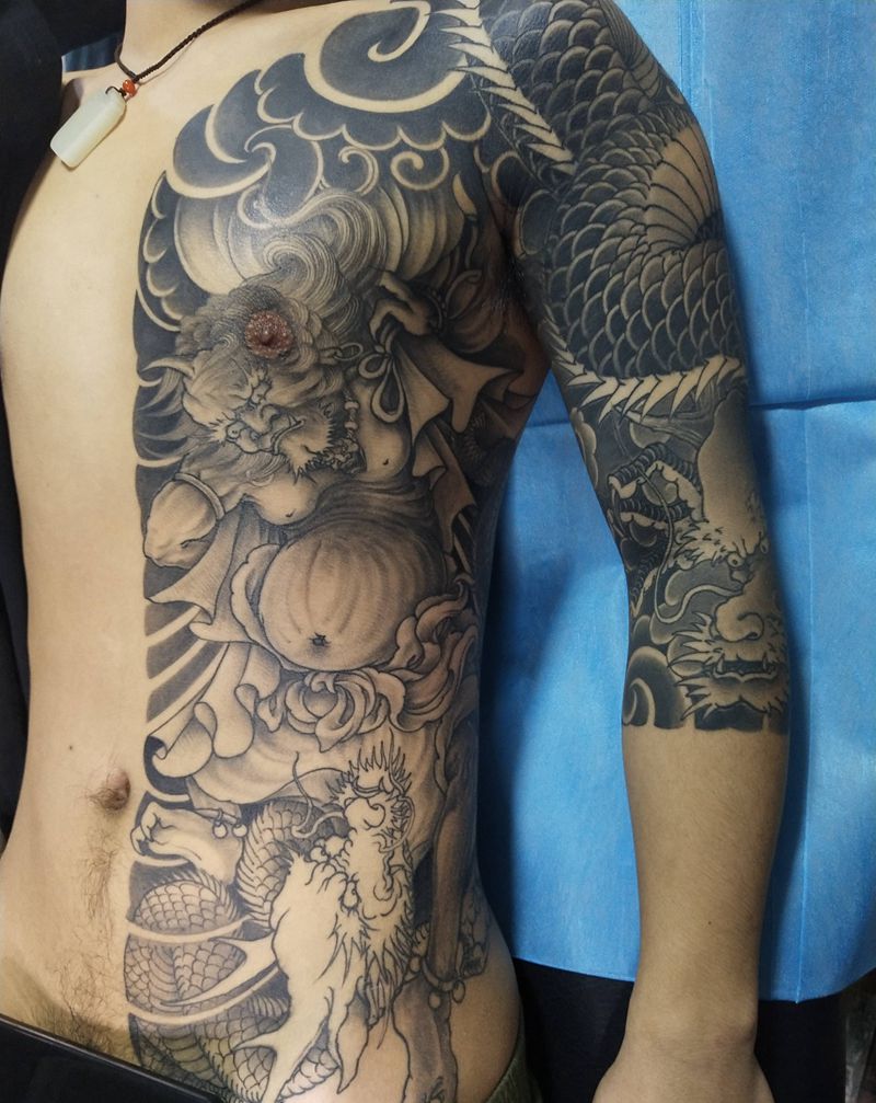 当前位置: 首页 >浙江省衢州市纹身店-民刺青工作室纹身图案>风神龙纹身图片_手臂胸部新传统老传统纹身图案