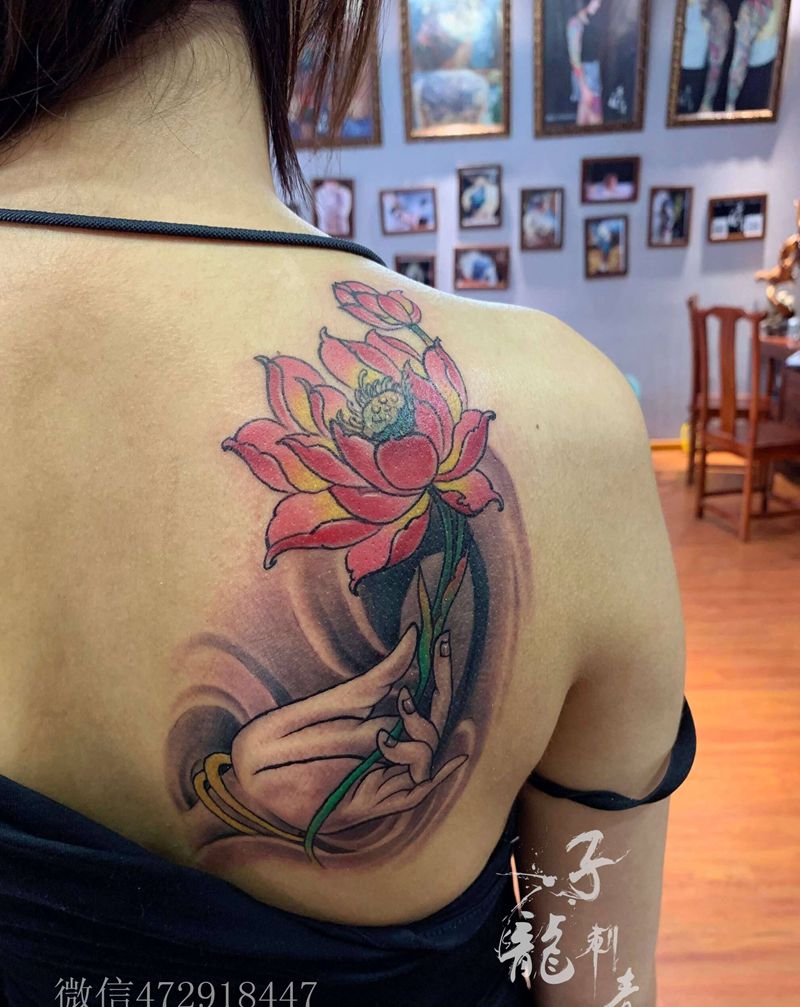 一组15张莲花纹身手