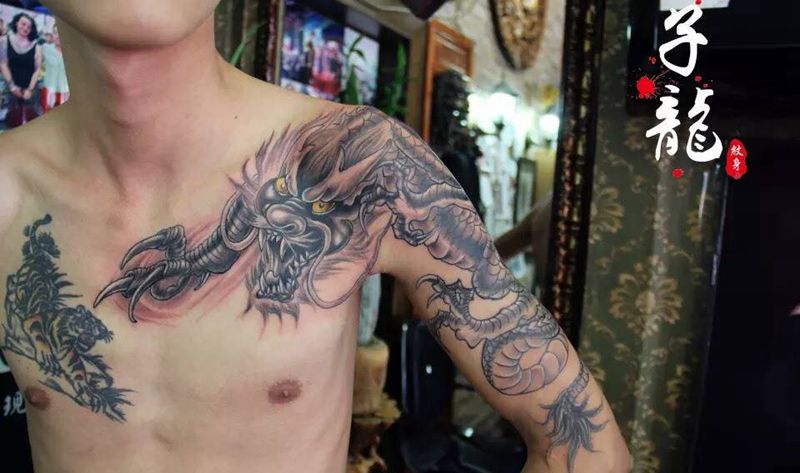 当前位置: 首页 >浙江省台州市纹身店-杜桥子龙纹身纹身图案>过肩龙纹身纹身图片
