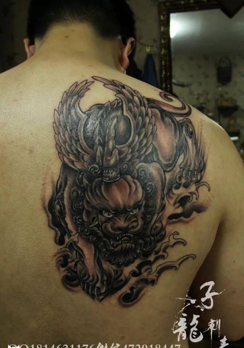 当前位置: 首页 >浙江省台州市纹身店-杜桥子龙纹身纹身图案>后背貔貅纹身纹身图片