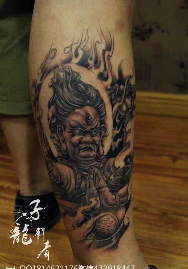 • T网红王老大花腿龙纹身图片_腿部新传统纹身图案
