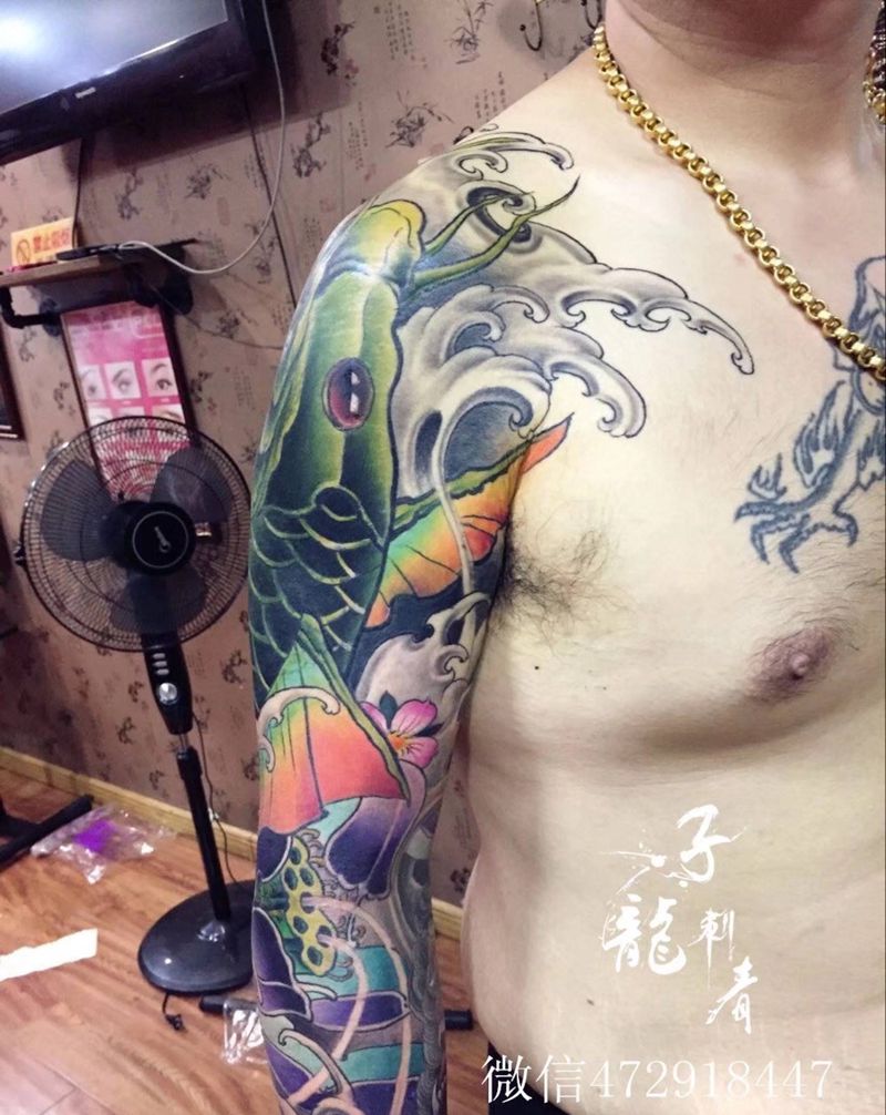 鲤鱼花臂浪花作品翅膀纹身纹身图片